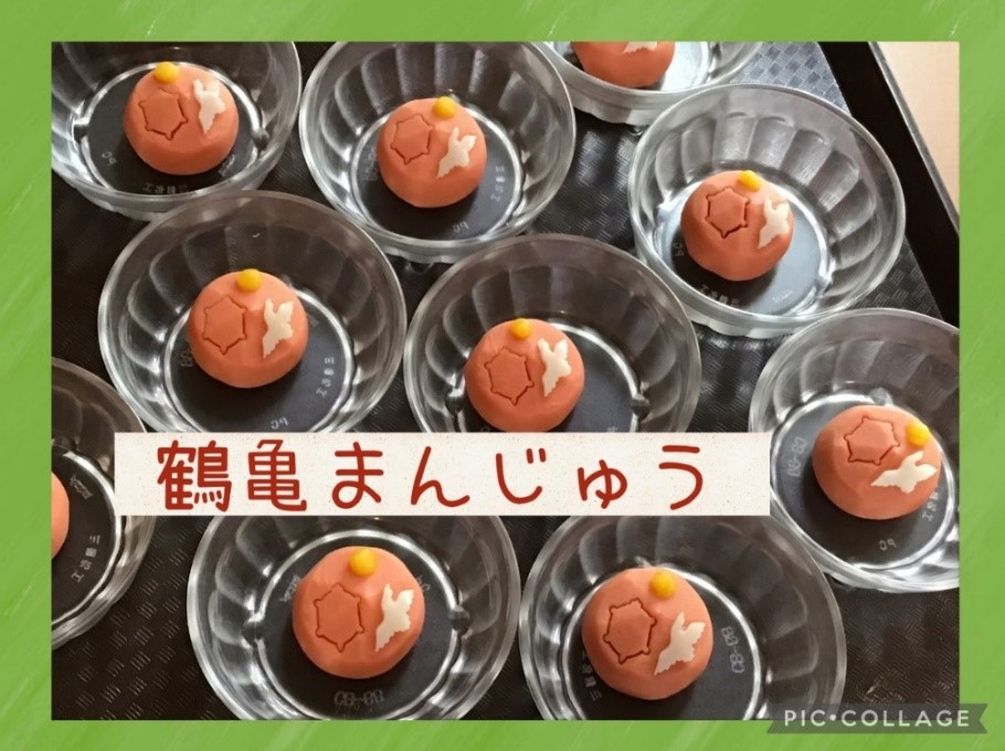 敬老の日は、鶴と亀のモチーフのおまんじゅうを提供しました。