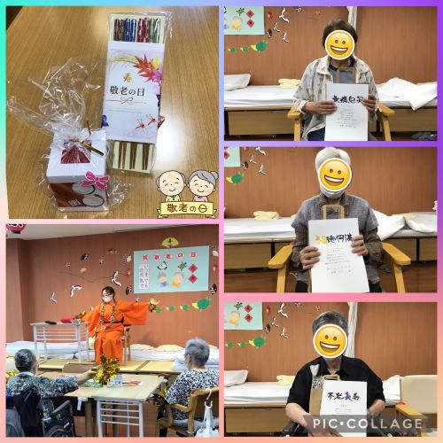 職員一同日頃の感謝を込めて、利用者さまへのプレゼント(茶碗とお箸)と、賀寿のお祝いをしました。