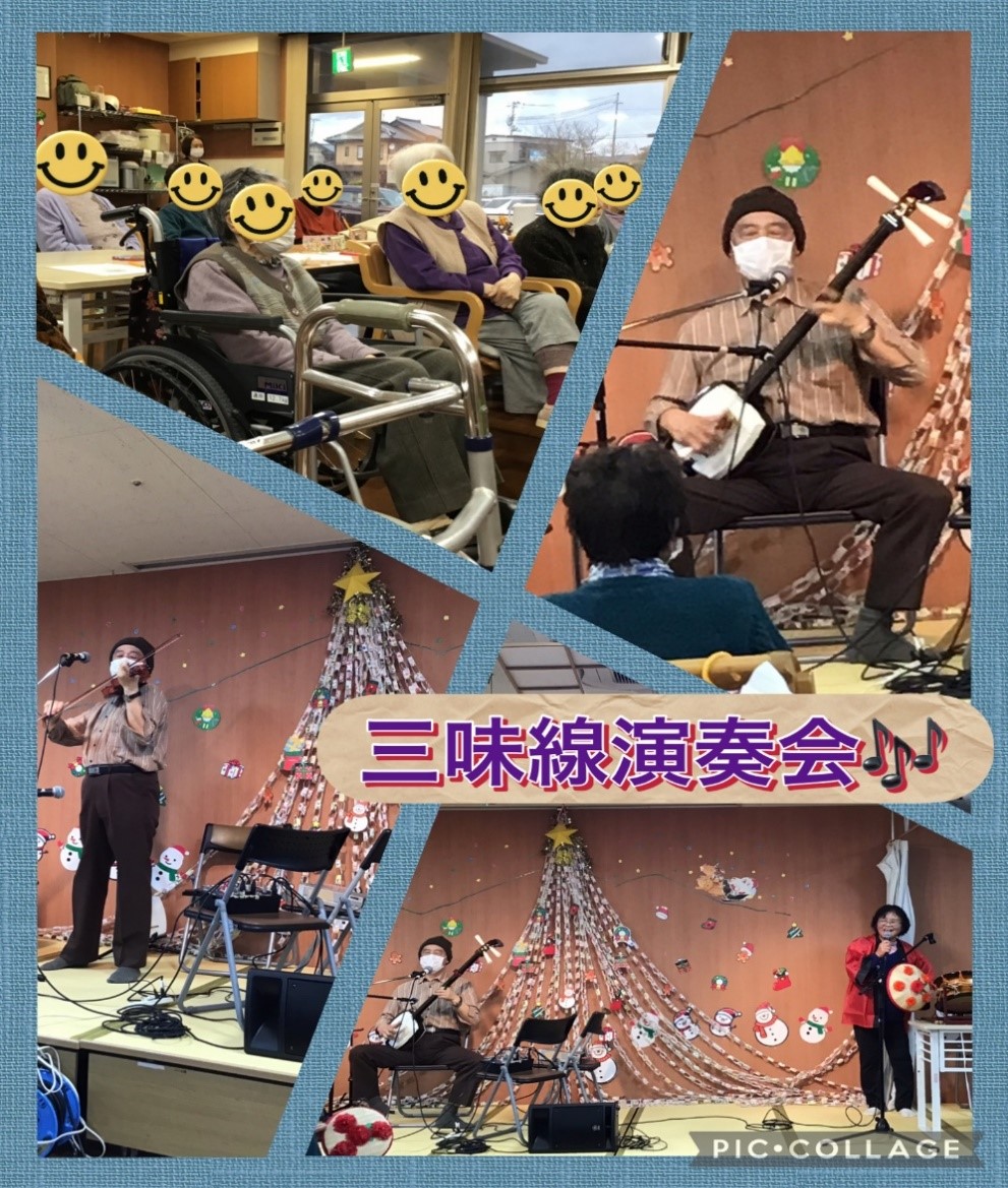 利用者様お馴染みの「会津磐梯山」や「さんさ時雨」、「新相馬節」を三味線の音色と歌い手の方の伸びやかな歌声に聴き入っていました (^^♪