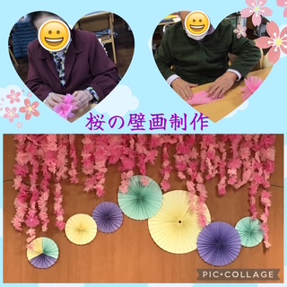 3月も終わりに近づき、春らしい壁画に通所ホールも模様替えしました。